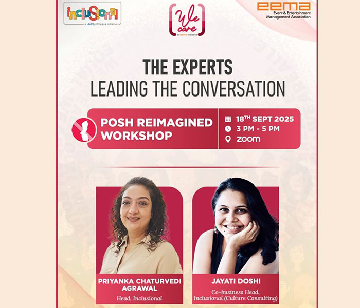 Invited as special guest and panelist to launch Event & Entertainment Management Association - EEMA's industry pledge to become 100% PoSH compliant and create safe and respectful workplaces for all genders. Flagship event - EEMAGINE 2025, Udaipur