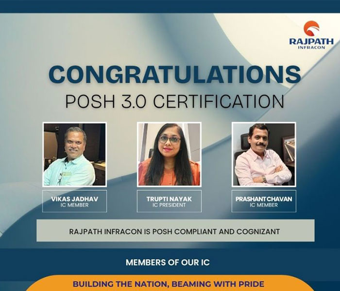 TESTIMONIAL: Trainer: PoSH Internal Committee, Rajpath Infracon. Capable, consistent handholding for 3 years straight. PoSh compliance to safety for all.